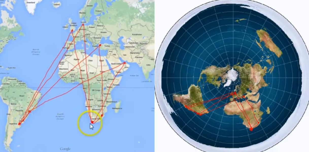 Same example, same answer:  You really don’t understand how fluids work, do you?  The Earth atmosphere follows the curve of the Earth, due to gravity, just like the oceans.  When a plane is flying, since it needs lift to stay in the air, the plane just follows the ‘level’ of the air around it.  It is just like a boat that follows the curve of the water.  In addition, there is this little thing called inertia.  If the world worked like how the flat earthers think it works, every time you hit a hard bump in your car, or  jump up in a train or airplane, you will immediately go smashing into the back of the rail car or cabin.  Just think about it.